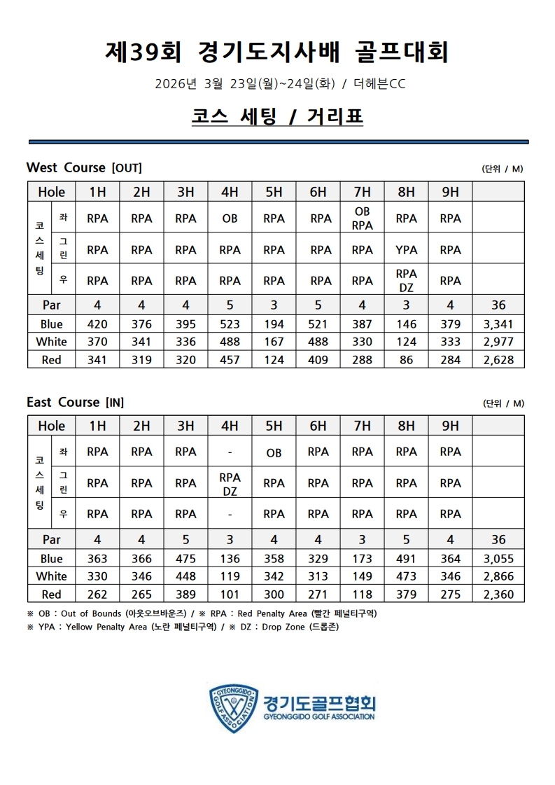 [거리표 등] _ 제39회 경기도지사배 골프대회