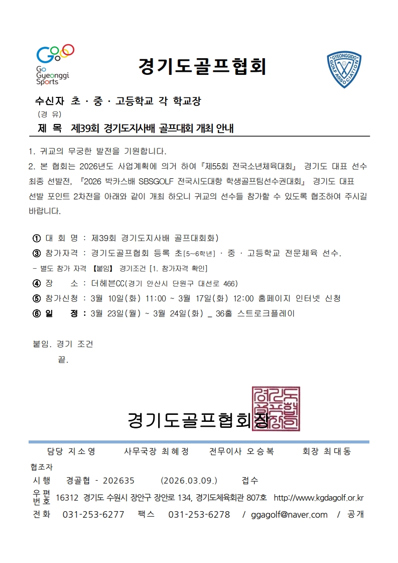 제39회 경기도지사배 골프대회 개최 안내