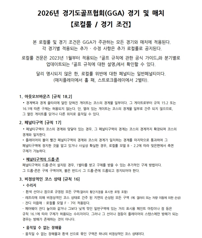 [필독사항] _ 2026년 GGA 경기 및 매치 - 로컬룰 / 경기조건(하드카드)