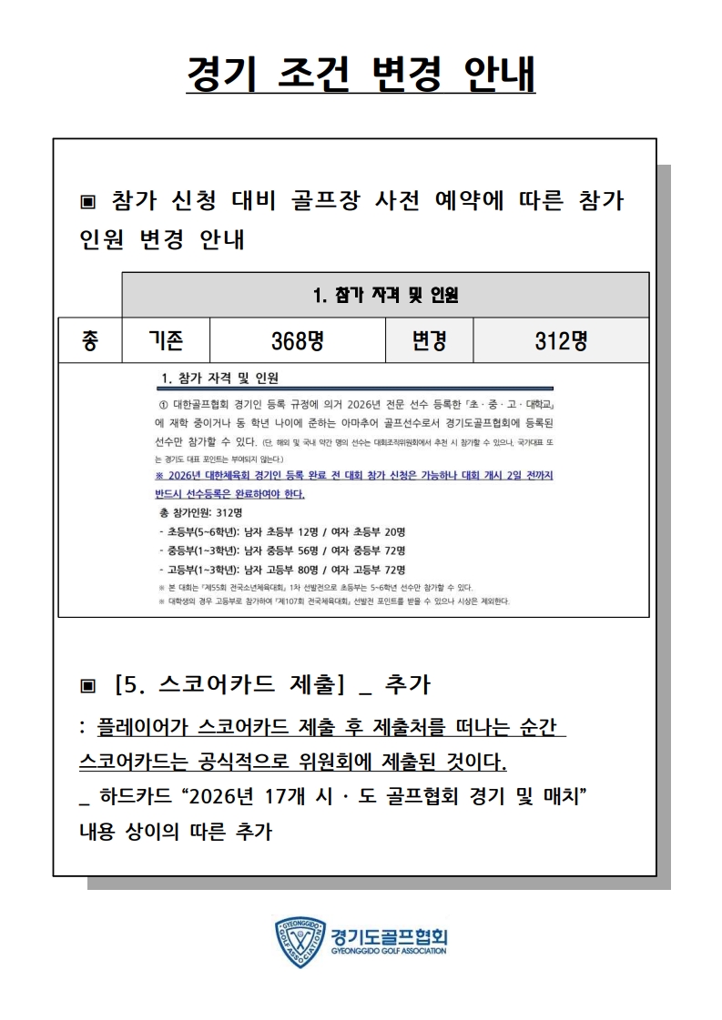 [경기조건 변경] _ 경기조건 변경 안내 - 제55회 전국소년체육대회 & 제107회 전국체육대회 1차 선발전