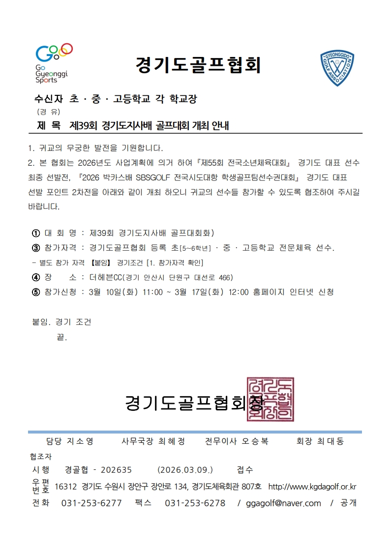 제39회 경기도지사배 골프대회 개최 안내