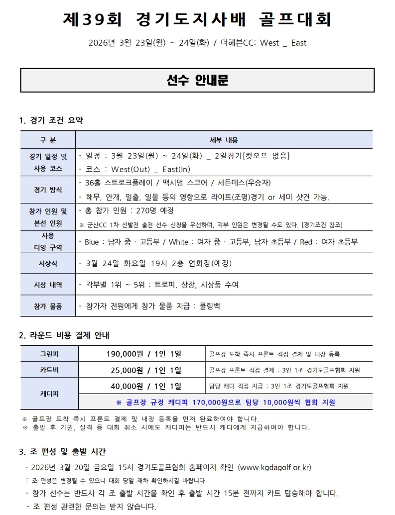 [선수 안내문] _ 제39회 경기도지사배 골프대회