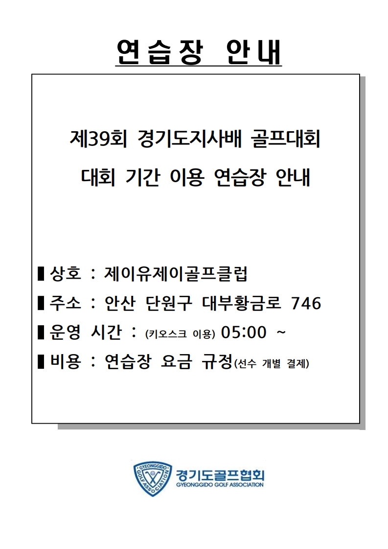 [연습장 안내] _ 제39회 경기도지사배 골프대회