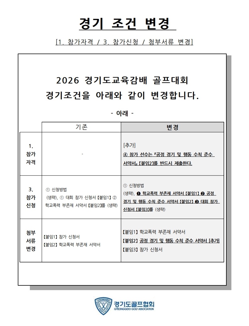 [경기조건 변경 안내] _ 2026 경기도교육감배 골프대회