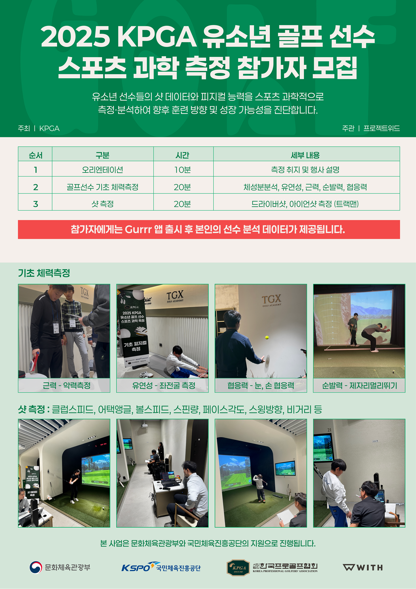 2025 KPGA 유소년 골프선수 스포츠과학 측정 참가자 모집