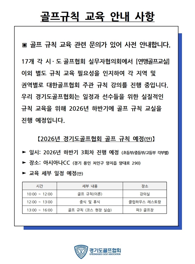골프규칙 교육 안내사항