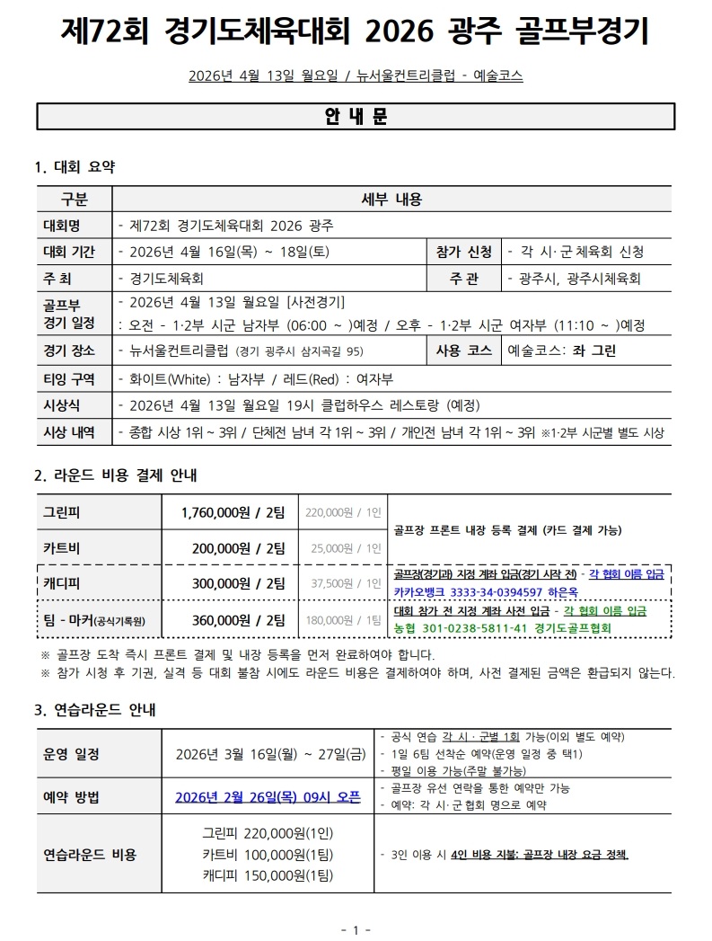 [선수 안내문] _ 제72회 경기도체육대회 2026광주 골프부 경기